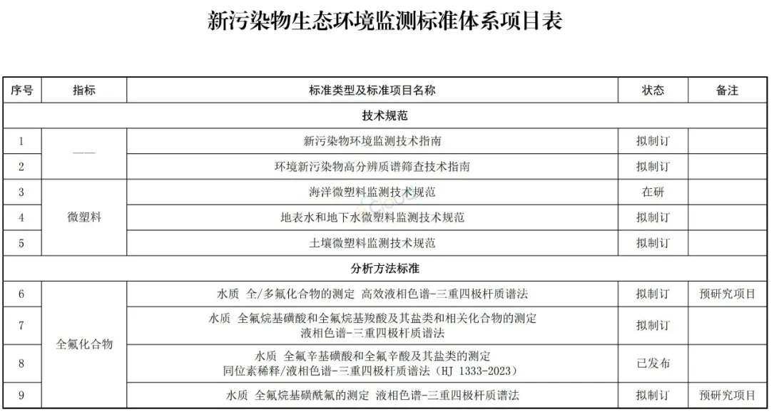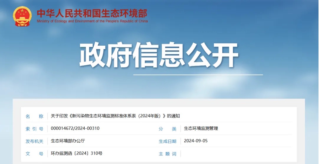 關(guān)于印發(fā)《新污染物生態(tài)環(huán)境監測標準體系表(2024年版)》的通知