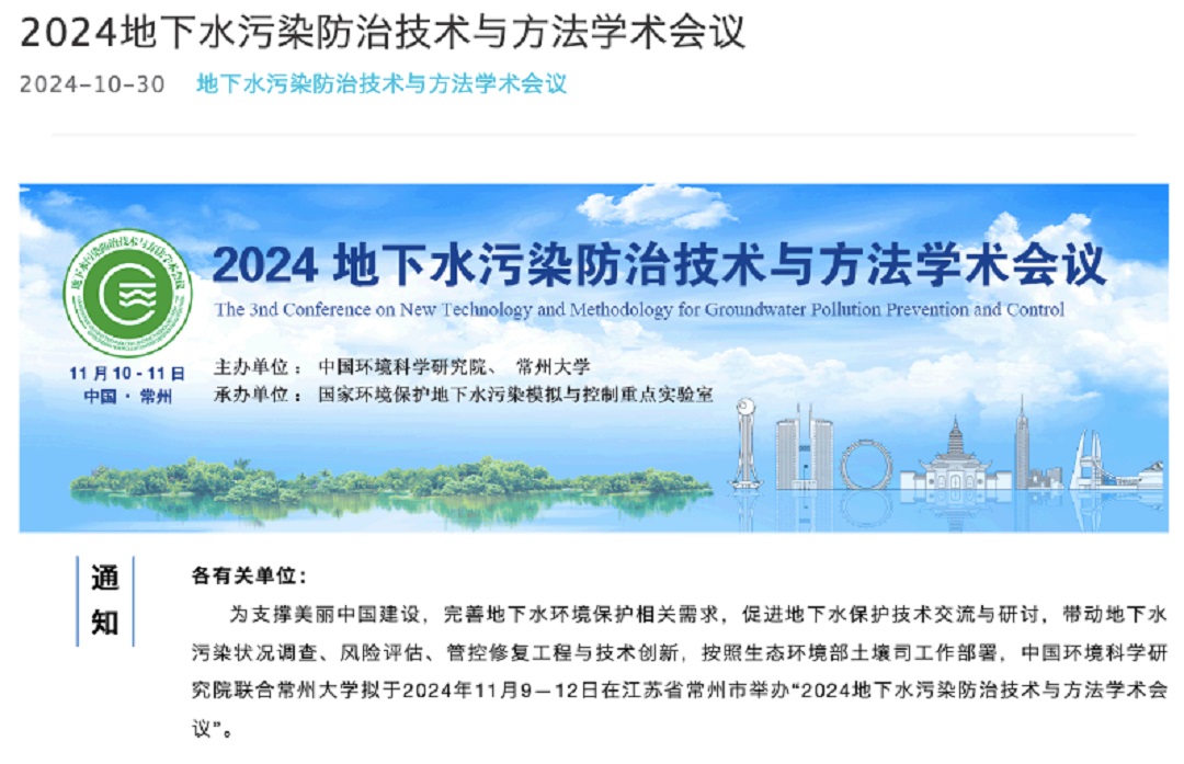 學(xué)術(shù)論壇二:由生態(tài)環(huán)境部土壤司主辦的“2024地下水污染防治技術(shù)與方法學(xué)術(shù)研討會(huì )”,將于2024年11月10日-11日在江蘇省常州市舉辦。大會(huì )邀請領(lǐng)域內長(cháng)期從事地下水污染防治與修復相關(guān)工作的專(zhuān)家、學(xué)者及管理者發(fā)表最新研究成果和觀(guān)點(diǎn);針對我國地下水領(lǐng)域相關(guān)政策、管理等需求,結合相關(guān)工作部署,進(jìn)行政策解讀與案例分析指導等;大會(huì )還將開(kāi)展科技成果展示:展示國內外地下水污染防治與修復領(lǐng)域最新成果、專(zhuān)利技術(shù)、典型工程案例等,進(jìn)一步促進(jìn)成果轉化和項目合作。