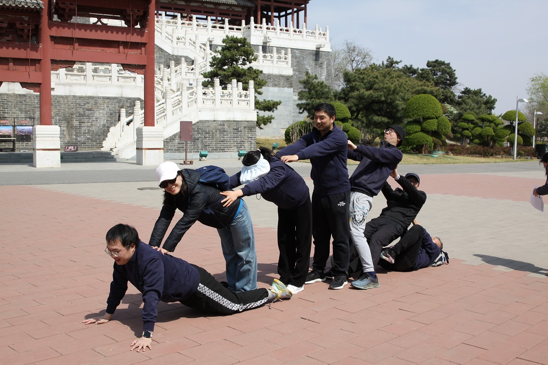 當團隊行至永定塔下,趣味游戲活動(dòng)正式拉開(kāi)帷幕。成員們被分成若干小組,開(kāi)展了別出心裁的擺姿勢游戲。根據小組抽簽結果,大家擺出搞怪逗趣的造型,引得現場(chǎng)笑聲連連。大家擺出的姿勢被裁判們判定與抽簽抽到的圖片上的姿勢一致才算獲得通過(guò),并且先通過(guò)的小組才算贏(yíng)。在永定塔古樸莊重的背景映襯下,這些充滿(mǎn)創(chuàng )意與歡樂(lè )的畫(huà)面為園博園增添了一抹別樣的色彩。游戲過(guò)程中,各小組團結協(xié)作、相互配合,不僅展現了團隊的智慧與默契,更讓大家在歡聲笑語(yǔ)中忘卻煩惱,盡情享受游戲帶來(lái)的樂(lè )趣。
